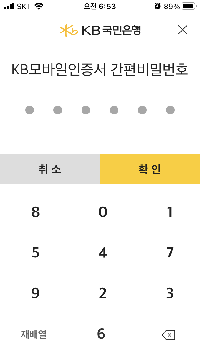 10. KB모바일인증서 간편비밀번호까지 입력하고 나면 끝!!