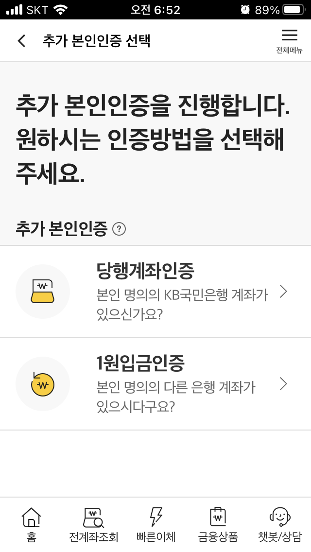 1. KB스타뱅킹 어플로 로그인합니다.