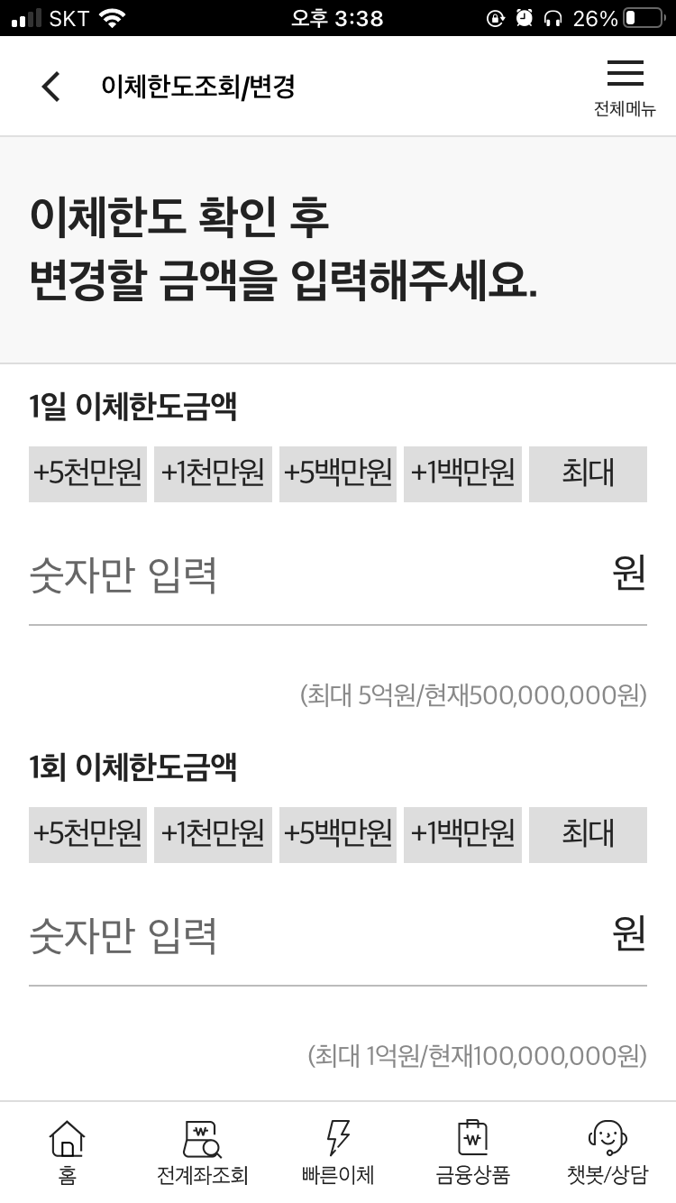 이체한도 변경에 관해서
