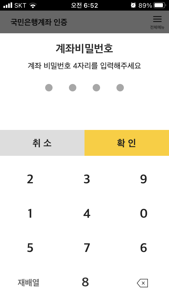 국민은행 계좌선택>계좌비밀번호입력